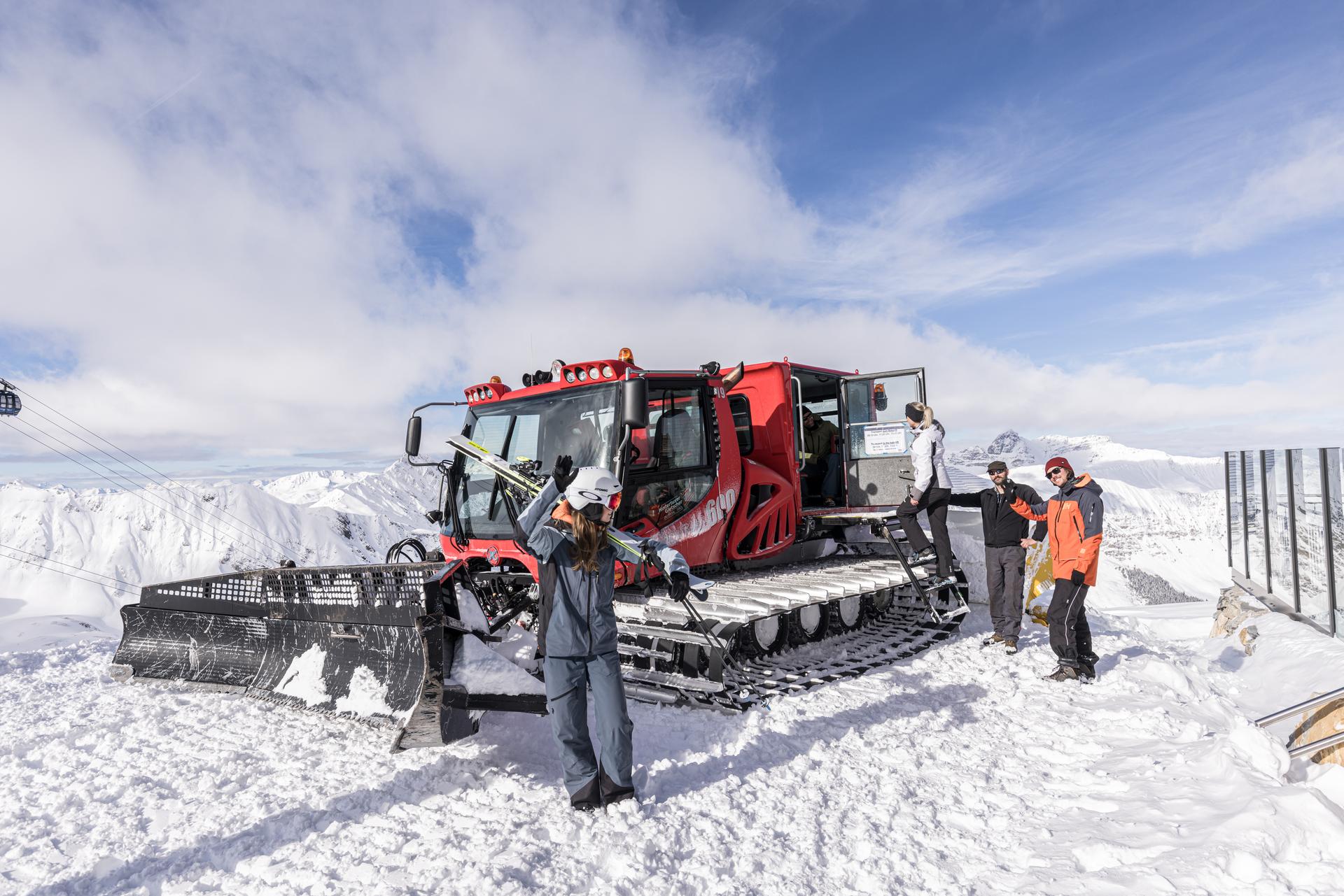 Für die Rückfahrt zum Tuxer Fernerhaus steht bereits der 600 PS starke Pistenbully bereit und bringt die Gäste nach einem erfüllten Nachmittag wieder zurück zur Gondelbahn. Komfortabel und besonders klingt die Tour aus. Im Anschluss geht es mit der Gondelbahn gemütlich zurück ins Tal.