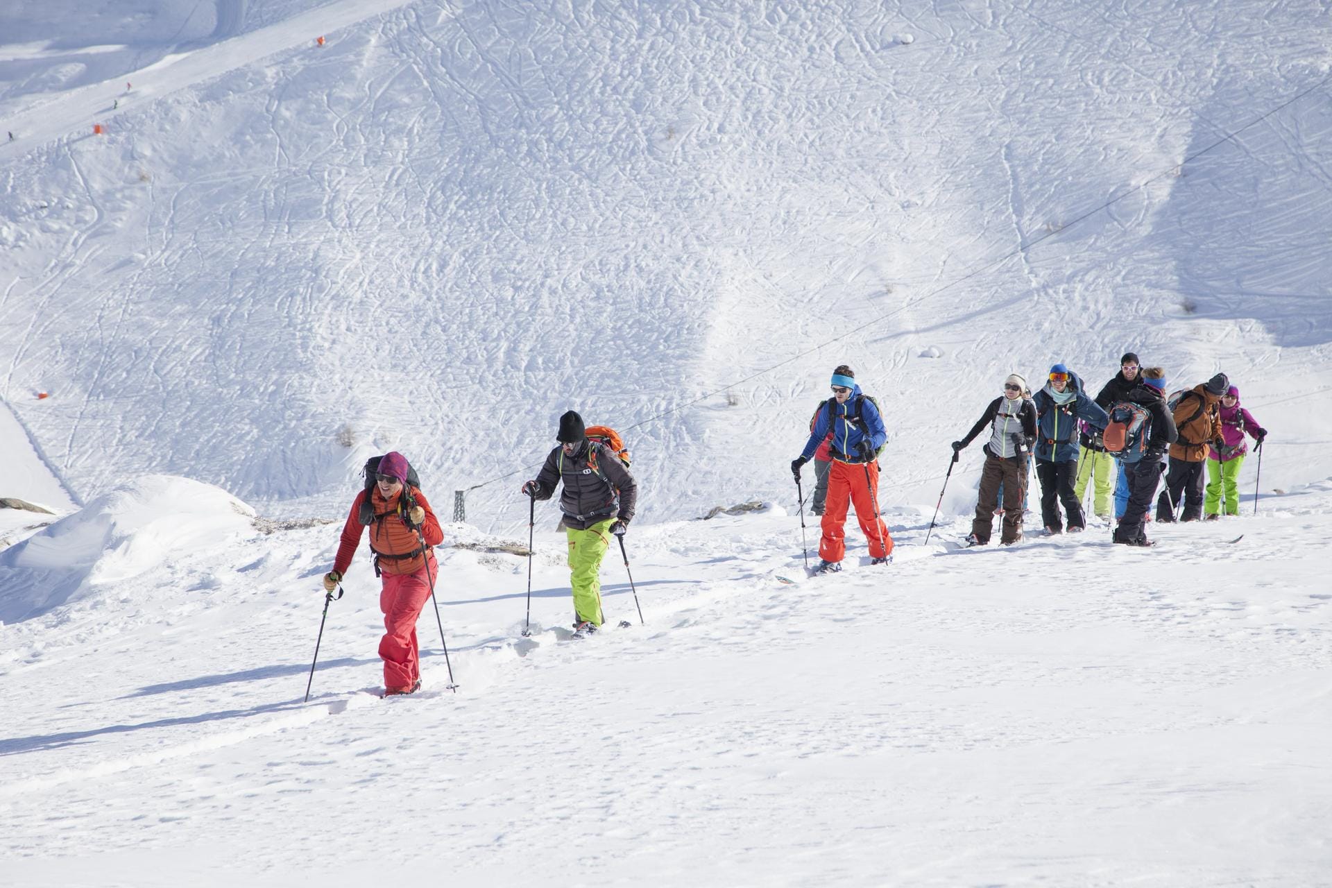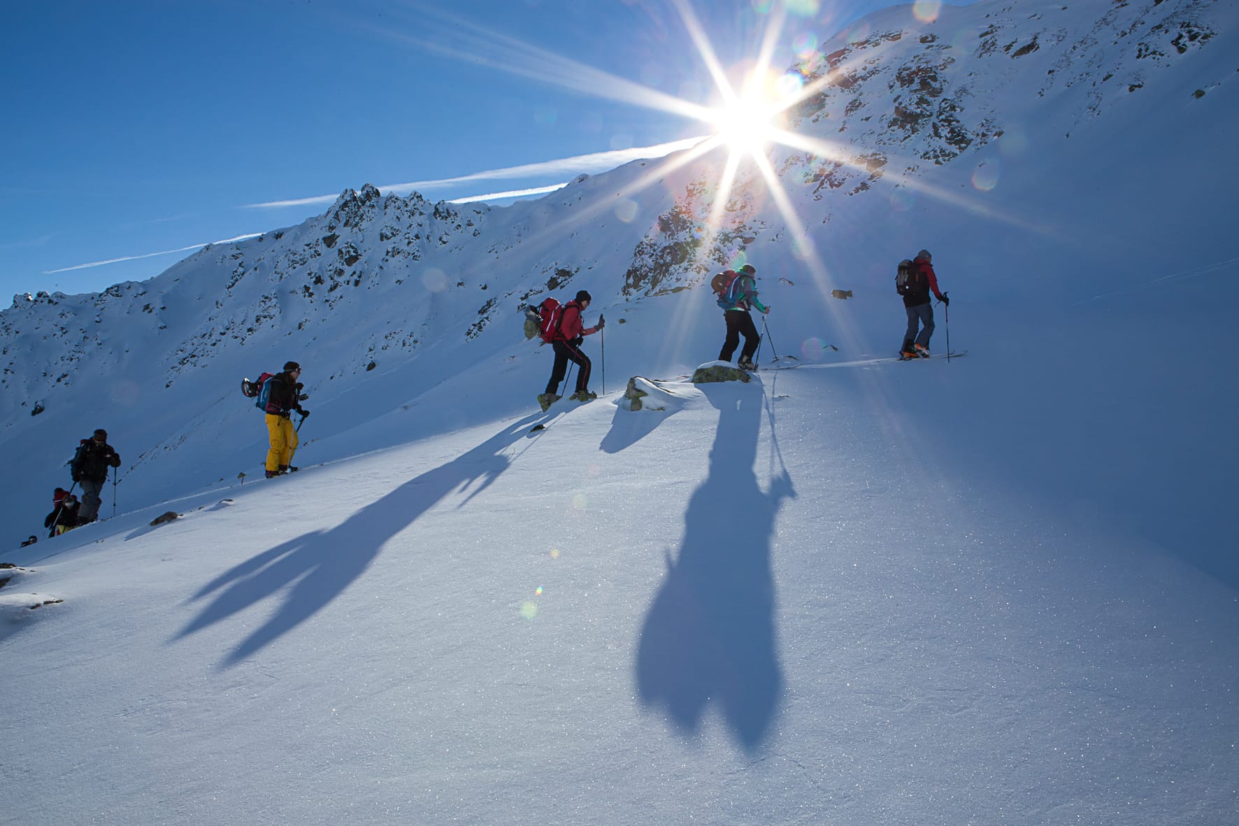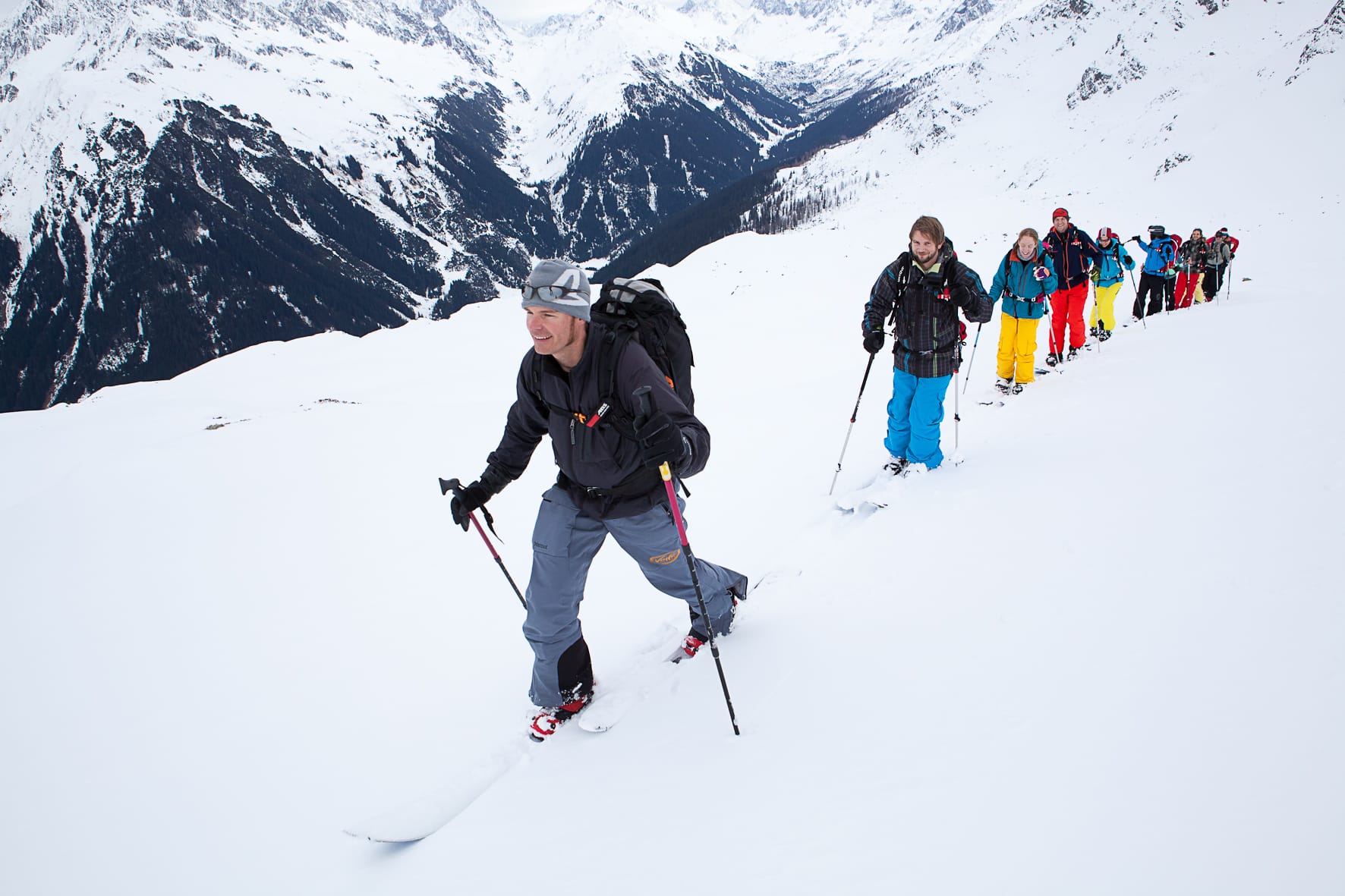 - Schulung des Verständnisses für Alpine Gefahren, Aufstiegstechnik im Gelände / Spurlage in Theorie und Praxis.
