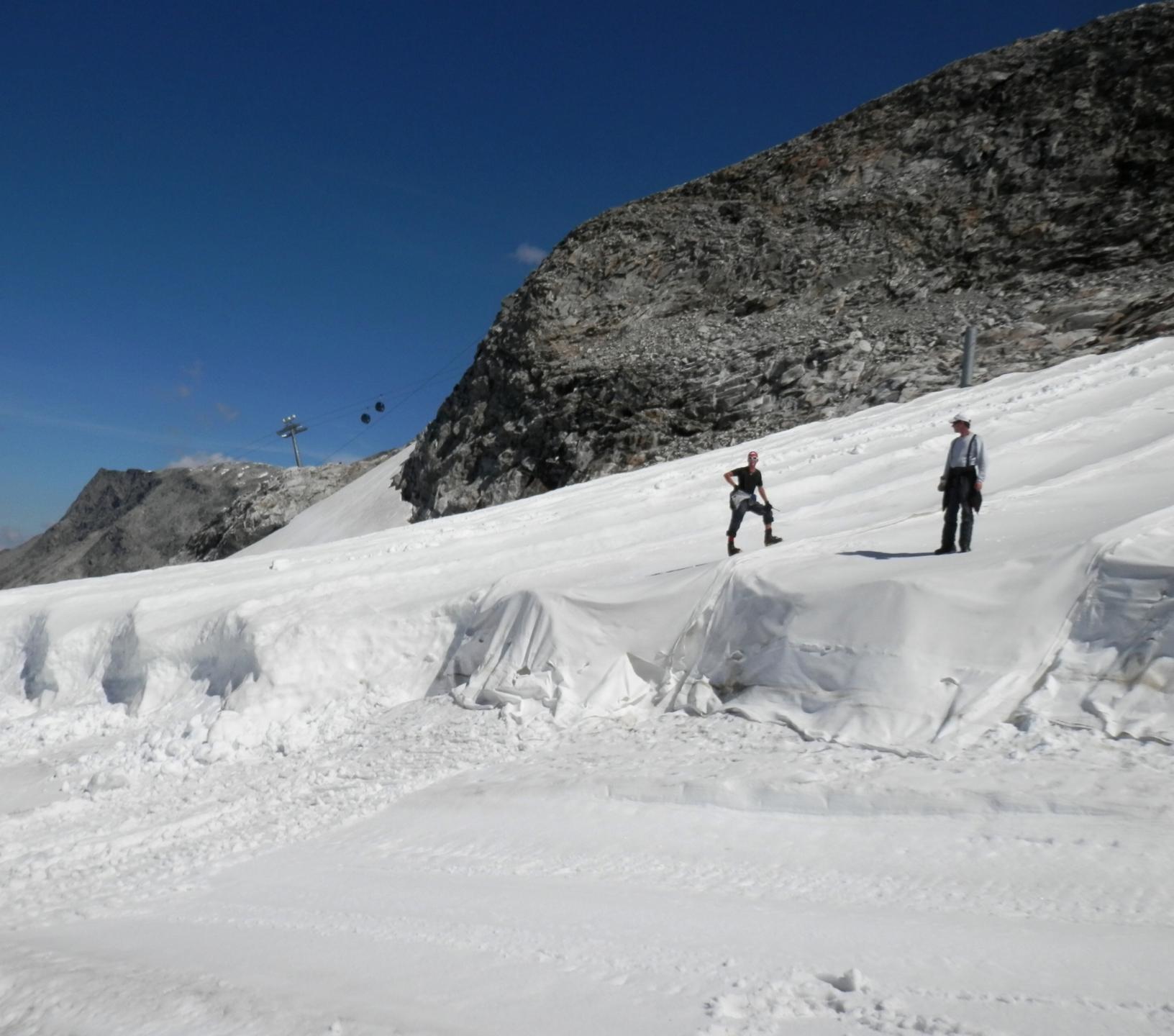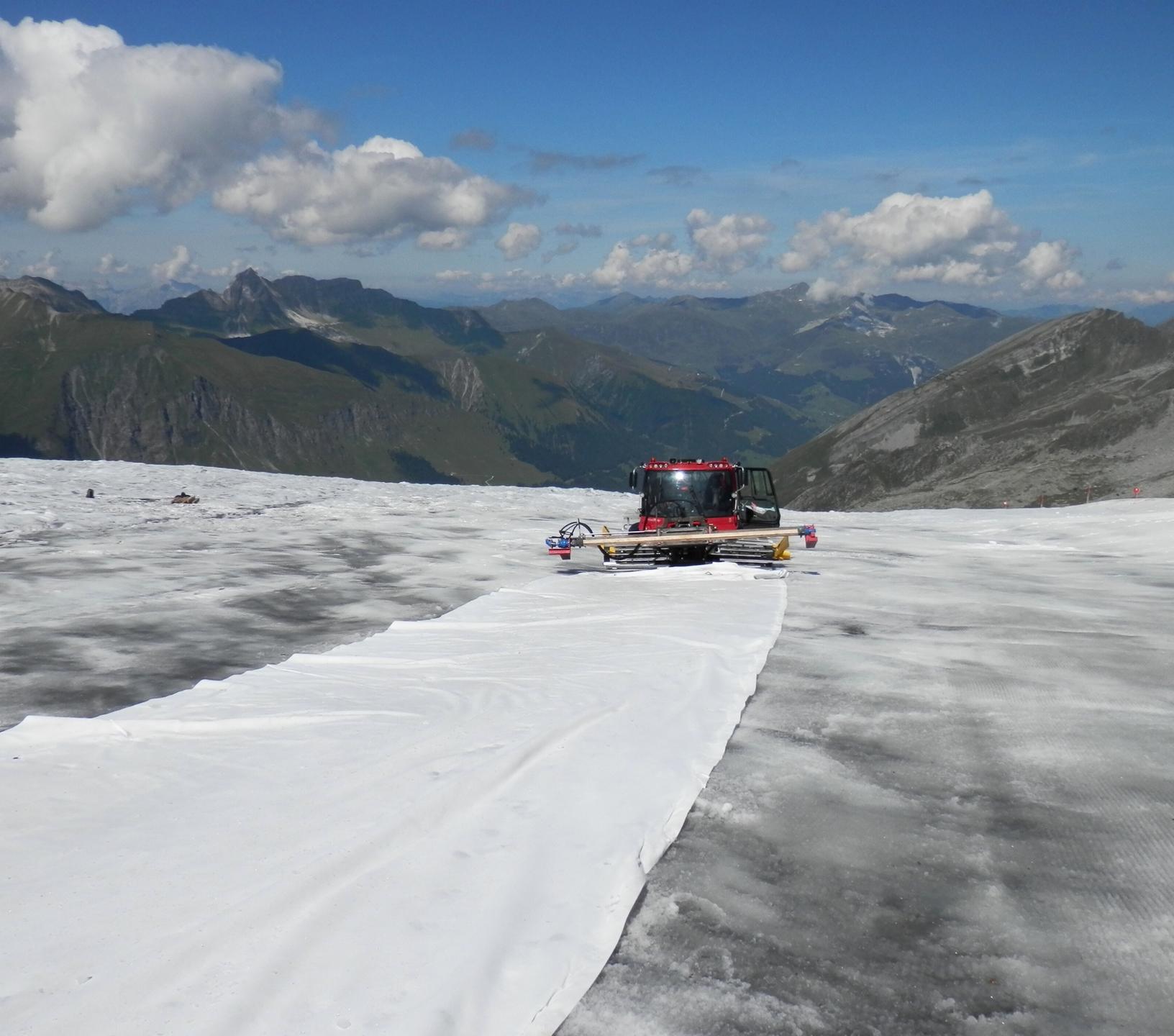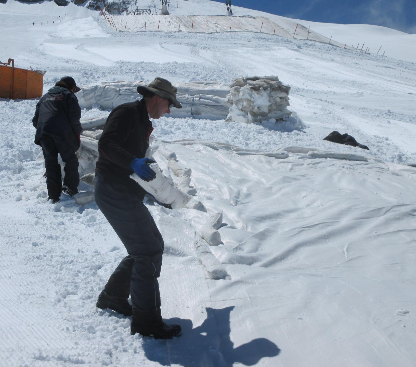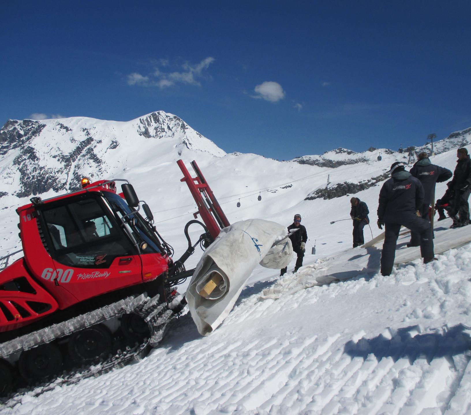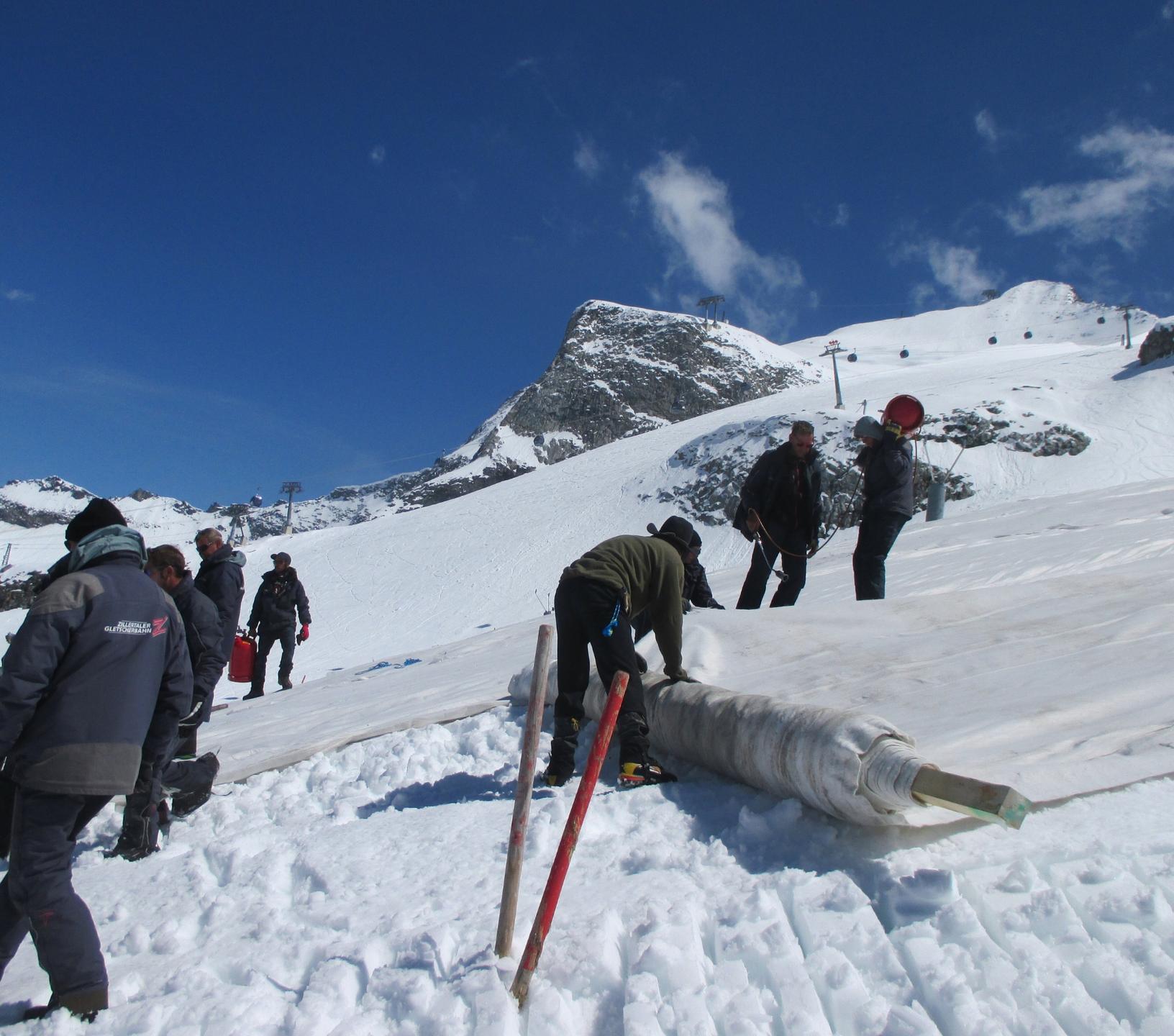 - Ausbringung des Vlieses auf bestimmten Bereichen am Hintertuxer Gletscher