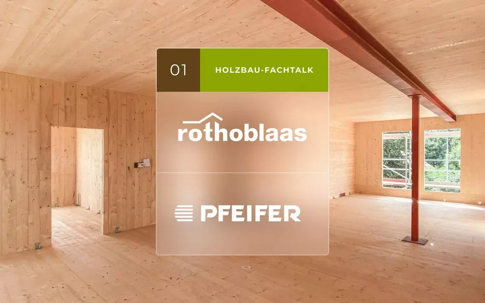 Einladung zum Holzbau-Fachtalk über die Vorteile von CLT, Bauzeiten- und Schallschutz mit Experten von Pfeifer und Rothoblaas am 16. Mai 2024.