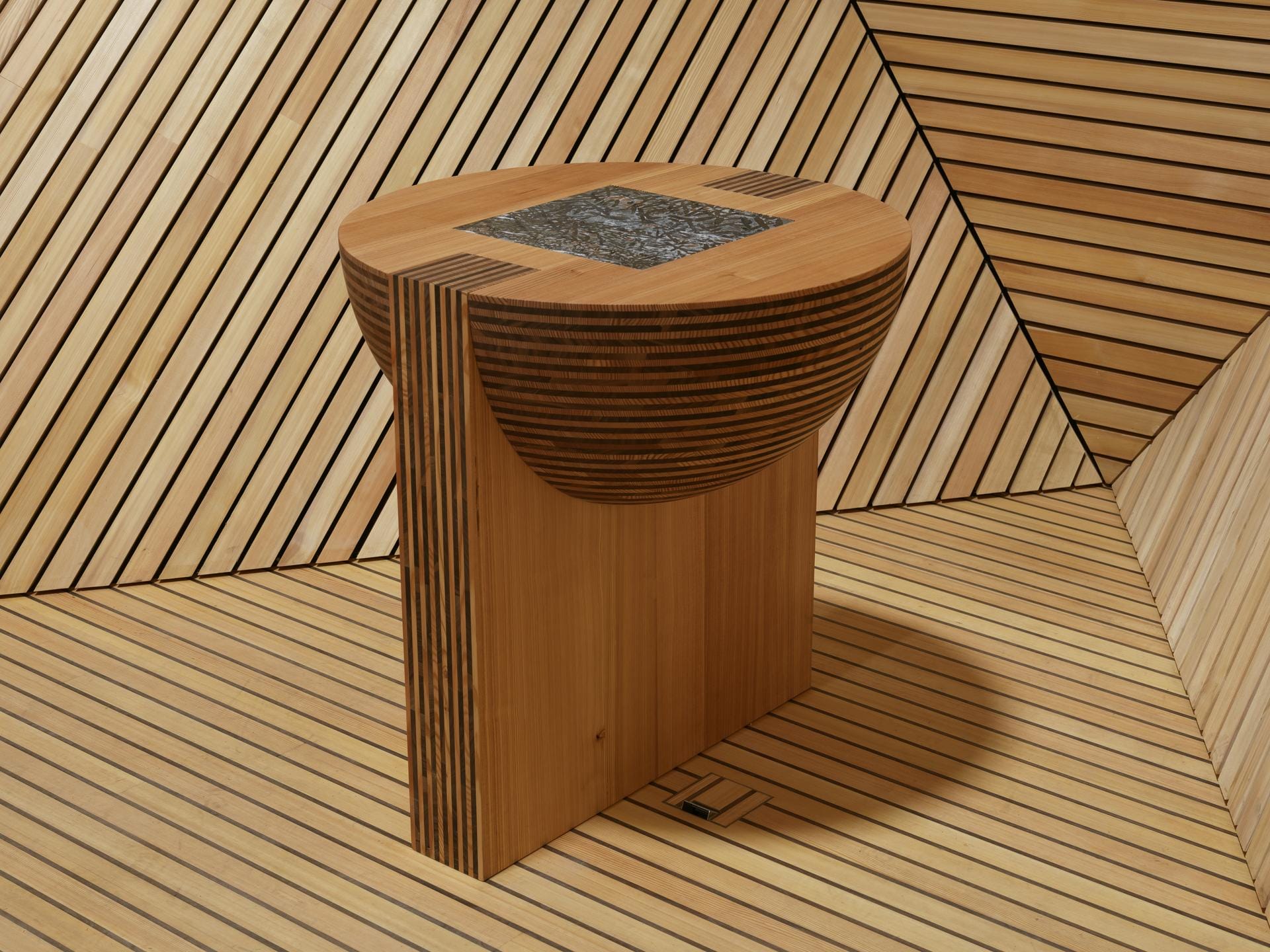 Rein technisch gesehen ging es darum, diesen geometrischen Körper auf dieser Höhe aus zwölf gleich großen Paneelen zu bauen. Aber man dachte dabei innen auch an eine leichte Holzkonstruktion. Und als Gegensatz den harten Corten Stahl, der streng ist, der Wind und Regen abweist. Einen weichen Kern mit einer harten Schale sozusagen. Wie eine Nuss. Es ging auch um das Spiel dieser zwei Emotionen. Von außen scheinbar undurchdringlich. Wenn man aber drinnen ist, entdeckt man eine süße und weiche Frucht.