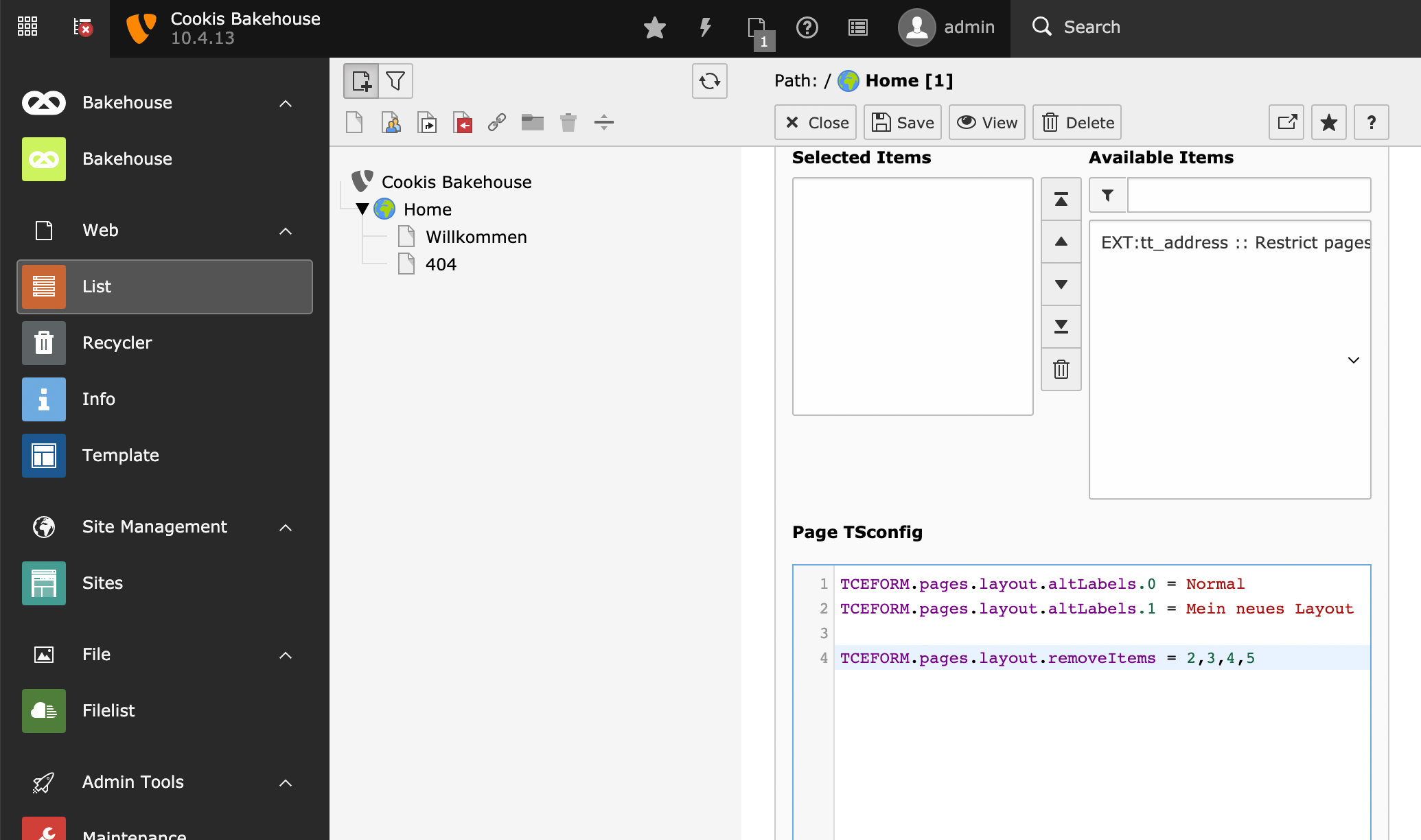 TCEFORM.pages.layout.altLabels.1 = Mein neues Layout