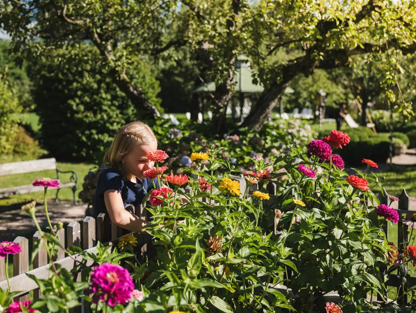 This is what makes the Zillertal so special and alive; the unlimited possibilities to experience a mountain summer or enjoy a winter holiday. And that doesn't just apply to adult guests because with us, it's not just the grown-ups who get their money's worth, but also our younger guests. We think that recreation and family holidays should not be a contradiction. On the contrary, we have designed our children's area and the romantic garden, with natural swimming lake and water playground, in such a way that some of our older guests wish they could be children again. Don't worry – for adults, of course, there is also enough space in our 15,000 m² garden area to enjoy the panorama of the Zillertal Alps in peace.