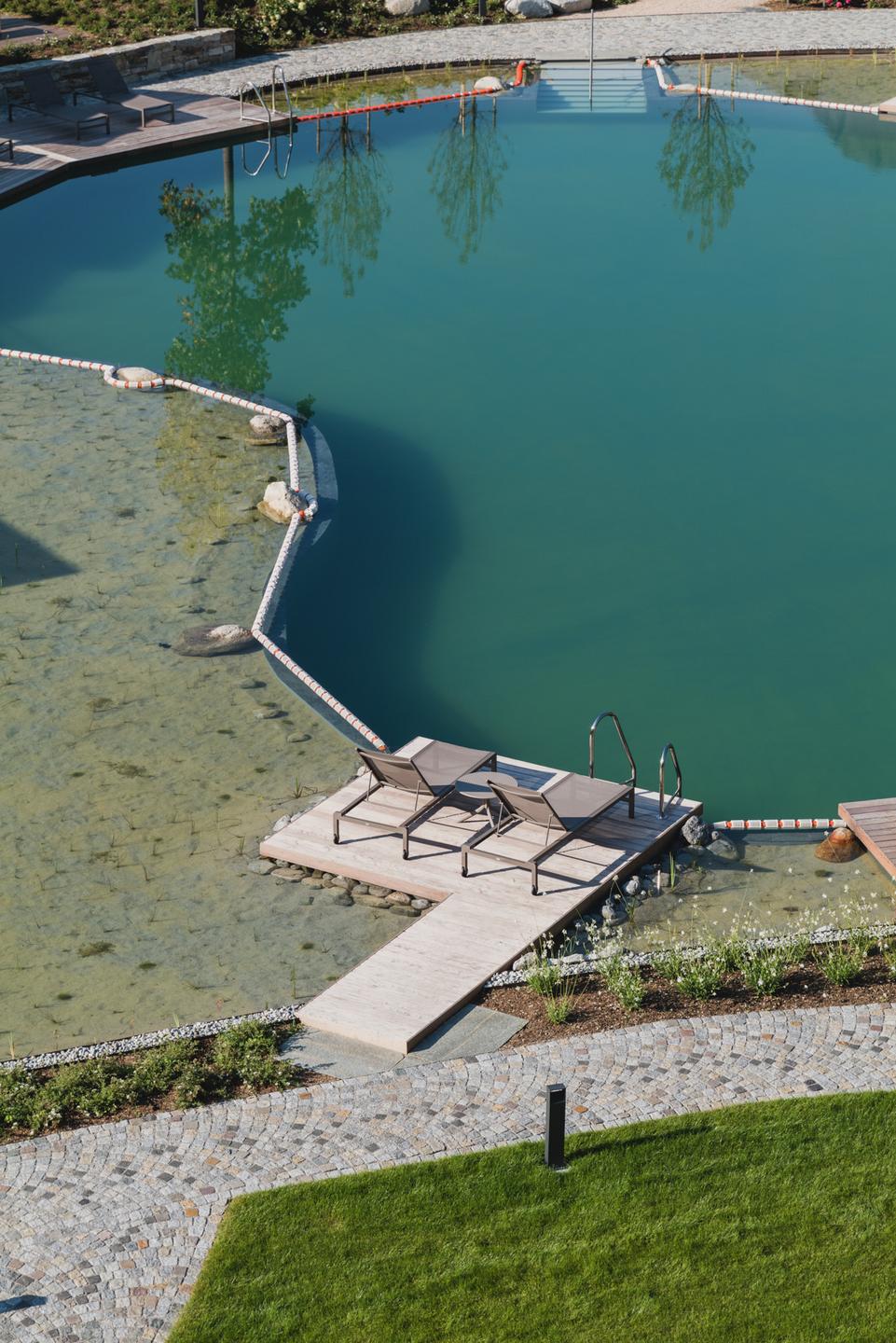 Nach getaner Arbeit lockt unser 210 m² großer Bewegungsraum. Mit Yoga, das Körper und Geist verbindet. Mit Fitness, die neue Energie schenkt. Mindestens fünfmal pro Woche erwarten Sie vielfältige Kurse. Von Power-Yoga bis Yogilates. Von Faszientraining bis Crossfit. Der aufwendig verlegte Eichenholzboden in Fischgrätmuster trägt Sie durch produktive Tage. Die angrenzende Sonnenterrasse lädt zu inspirierenden Pausen ein. Und am Abend wartet unser Infinity-Pool auf große Gedanken. Unsere Saunalandschaft auf tiefe Entspannung. Und Gäste aus aller Welt warten auf regen Austausch.