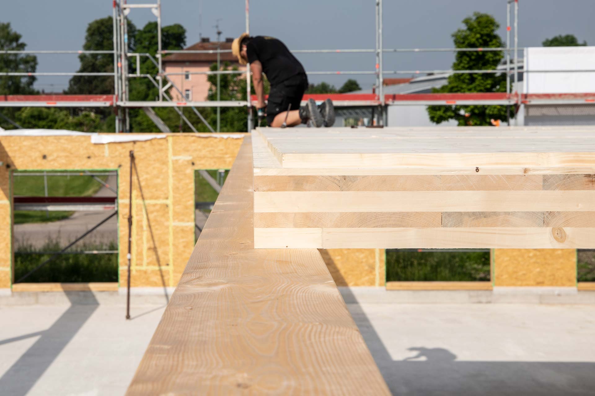 A construction site of a timber house - working with Pfeifer CLT
