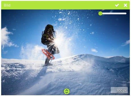 - Mit dem pictureheight runden Symbol am unteren Ende des Bildrahmens lässt sich die Höhe des Bildes zuschneiden. Die Höhe des Bildausschnitts kann auch durch direkte Eingabe eines Wertes in Pixel im Eingabefeld rechts unten geändert werden.