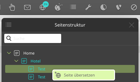Per Rechtsklick lässt sich eine Seite zur Übersetzung freischalten.