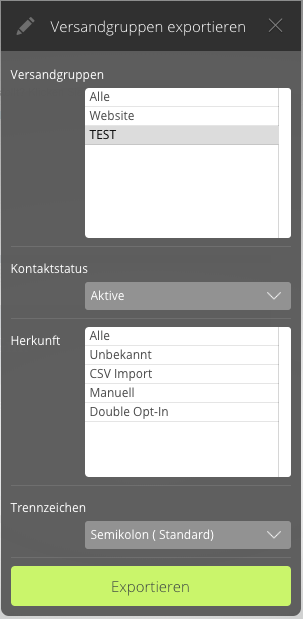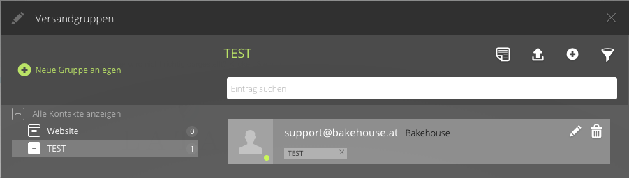 - Angemeldete Adressen: Alle Adressen der Versandgruppe, die den Newsletter erhalten.