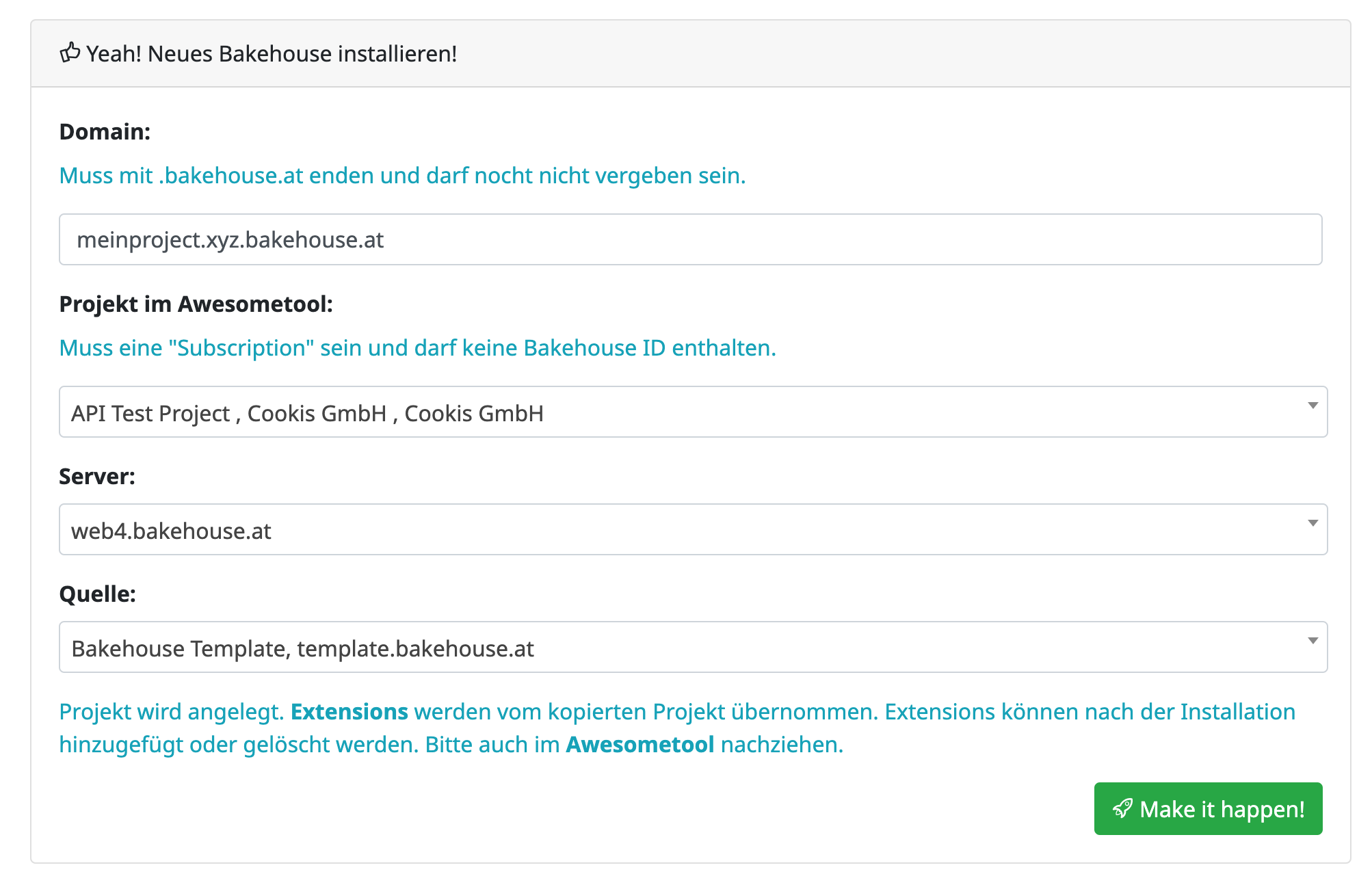 - Die Domain eingeben (muss mit .bakehouse.at enden).