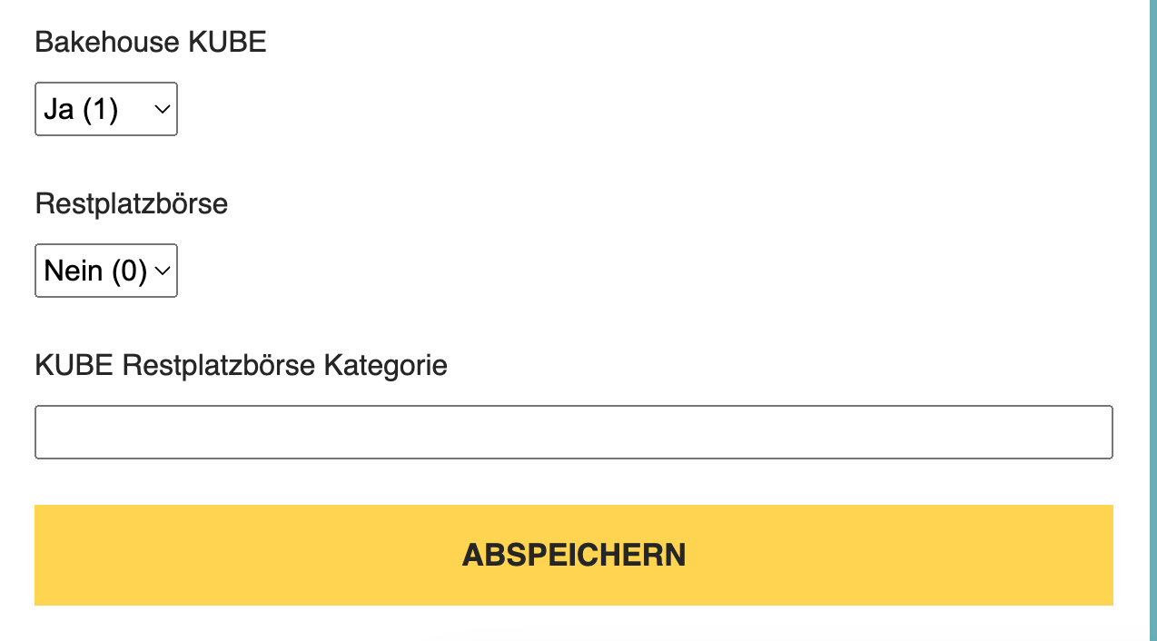 In der HAPI Admin-Übersicht auf den entsprechenden Eintrag klicken und bei den Einstellungen "Bakehouse KUBE" auf Ja (1) setzen. Auf "ABSPEICHERN" klicken nicht vergessen.