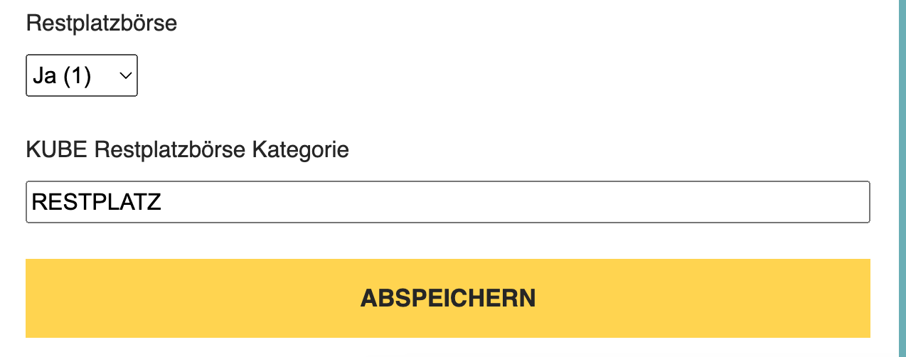 - 1. Beim Eintrag die Restplatzbörse aktivieren (auf "Ja (1)" stellen).