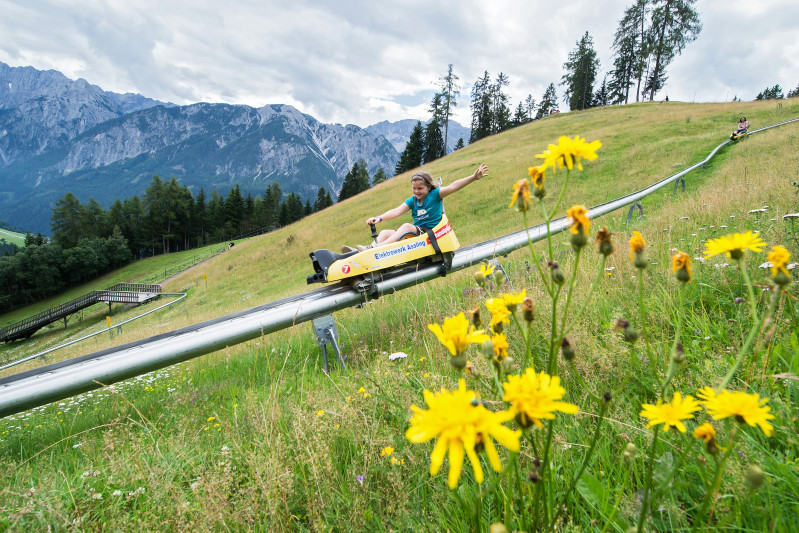 Die Sommerrodelbahn ist eingebettet in die herrliche Naturlandschaft des Wildparks Assling und eröffnet bei der Bergfahrt den Blick auf grasende Hirsche und Mufflon. Bei der Talfahrt sieht man direkt auf die nahen Lienzer Dolomiten. So macht eine Fahrt immer und immer wieder Spaß für die ganze Familie.