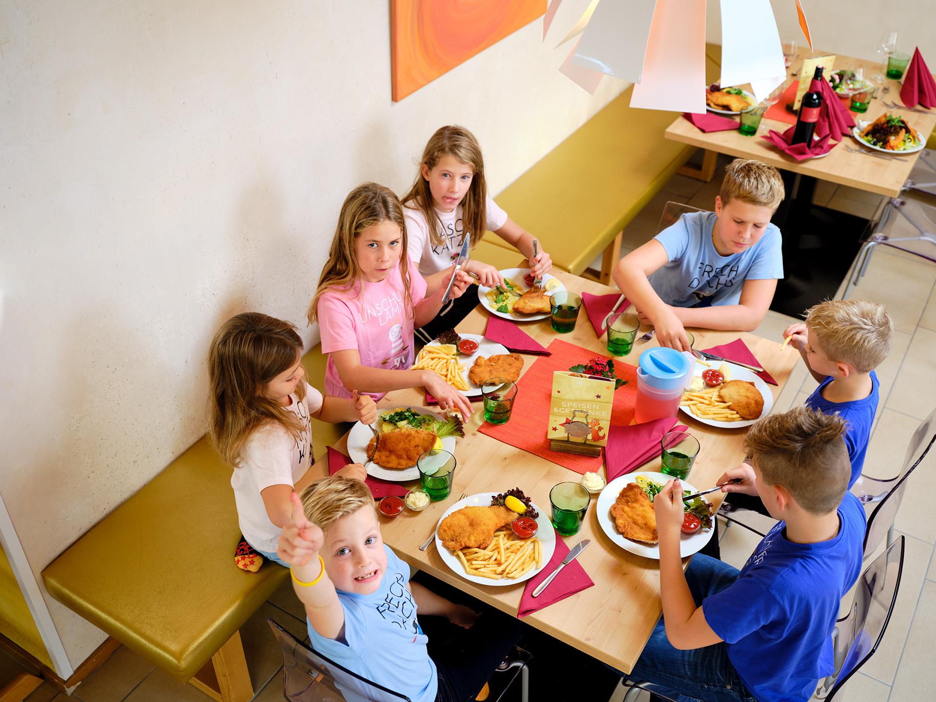Frühstück, Salat- und Nudelvariationen, Wiener Schnitzel, Torten, Eis. Die Küche verwöhnt kleine und große Gäste mit einer Vielfalt an hausgemachten Speisen. Regionalität und Qualität werden großgeschrieben.