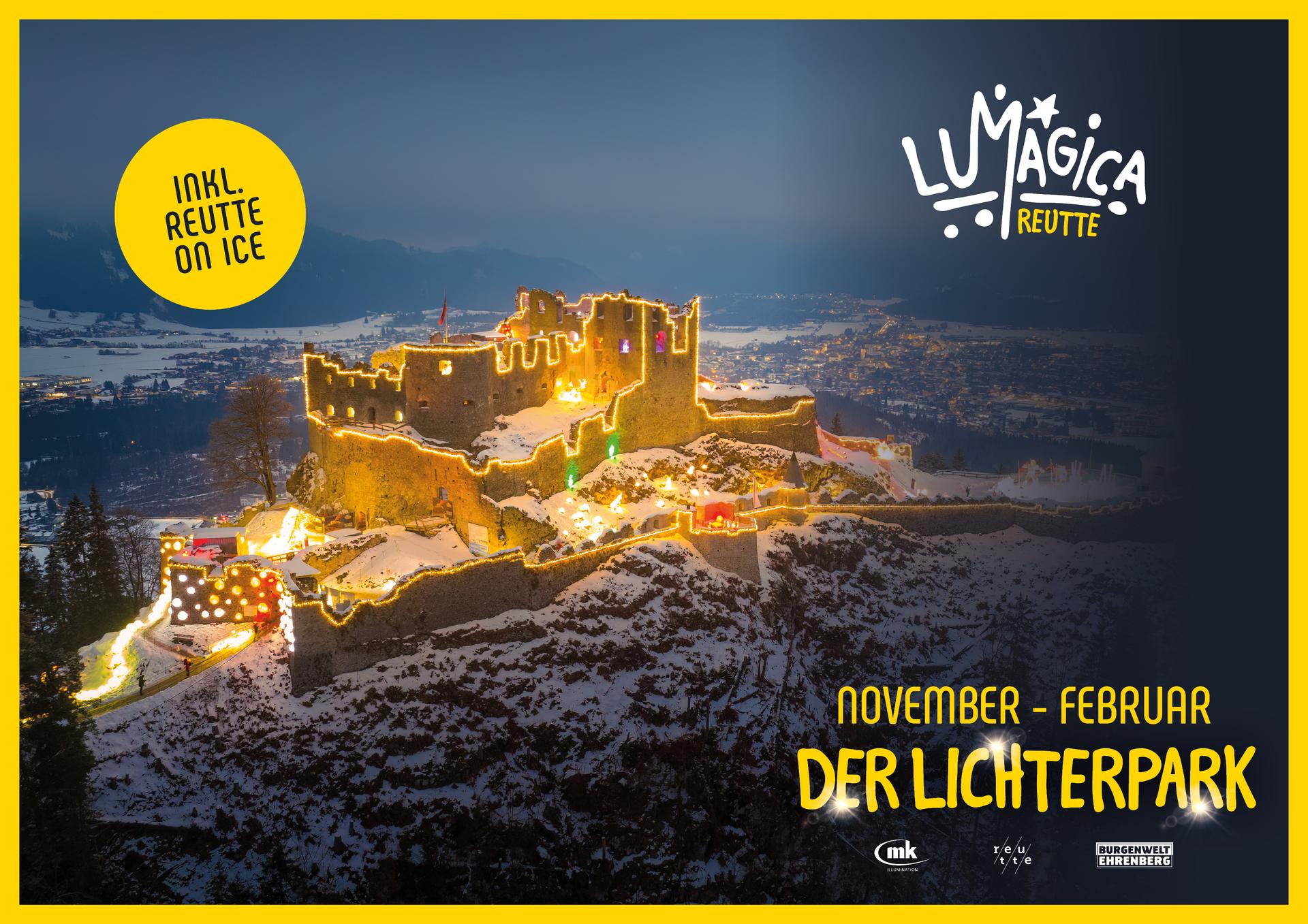 Ein magisches Lichterlebnis auf der Burgruine Ehrenberg! Wenn sich die historische Festung hoch über Reutte in ein funkelndes Lichtermeer verwandelt, ist LUMAGICA zurück in Tirol! Unter dem Motto „Die Magischen 5 Elemente“ erwartet die Besucherinnen und Besucher eine außergewöhnliche Reise durch Feuer, Wasser, Luft, Erde und Musik.