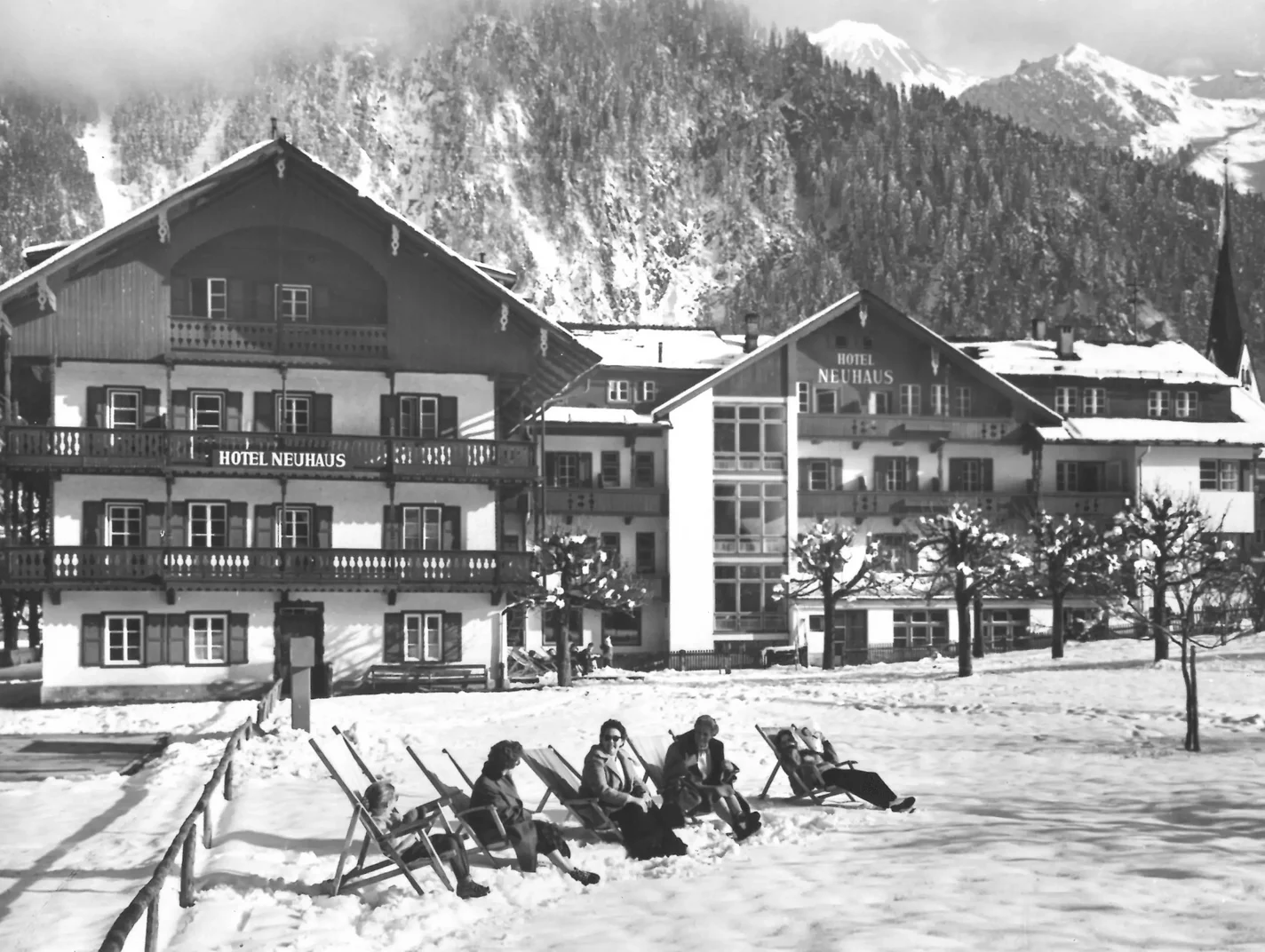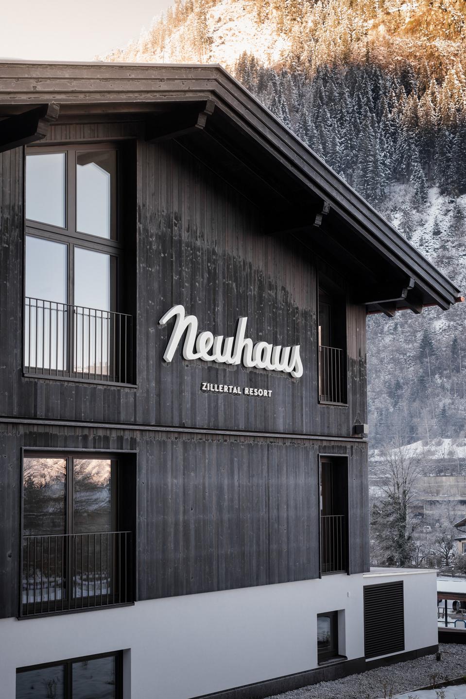 Vom ersten Moment an, in dem Sie durch den traditionellen Eingang in unser Resort Hotel Neuhaus eintreten, spüren Sie die Geschichte, die sich wie die Jahresringe eines Baumes in vielen Details unseres Hauses abzeichnen. An der Fassade über dem Eingang lesen Sie den originalen Schriftzug von damals, als unser Haus noch als Gasthof Neuhaus im Zillertal bekannt war. Noch früher, viel früher, im Jahr 1649 war das Haus mit dem Hofnamen Neuhaus ein landwirtschaftlicher Betrieb, zu dem ein Bauernhof, ein Gasthaus und die örtliche Poststelle gehörten. Für eine lange Zeit, lange bevor Mitte des 19. Jahrhunderts der Alpentourismus Fahrt aufnahm, war der Gasthof Neuhaus Treffpunkt und Mittelpunkt von Mayrhofen. Dann, mit dem Bau der Penkenbahn 1953/54, wurde aus dem Gasthof Neuhaus bald ein Hotel – ein Vorreiter in Mayrhofen und im ganzen Zillertal.