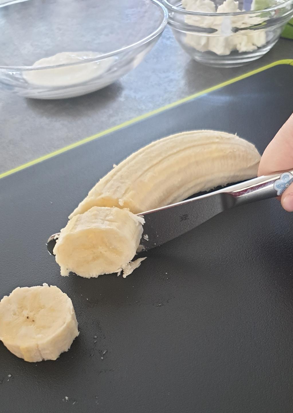 - 1 braune Bio-Banane (wenn die Banane nicht braun ist, schmeckt die Creme nicht süß)
