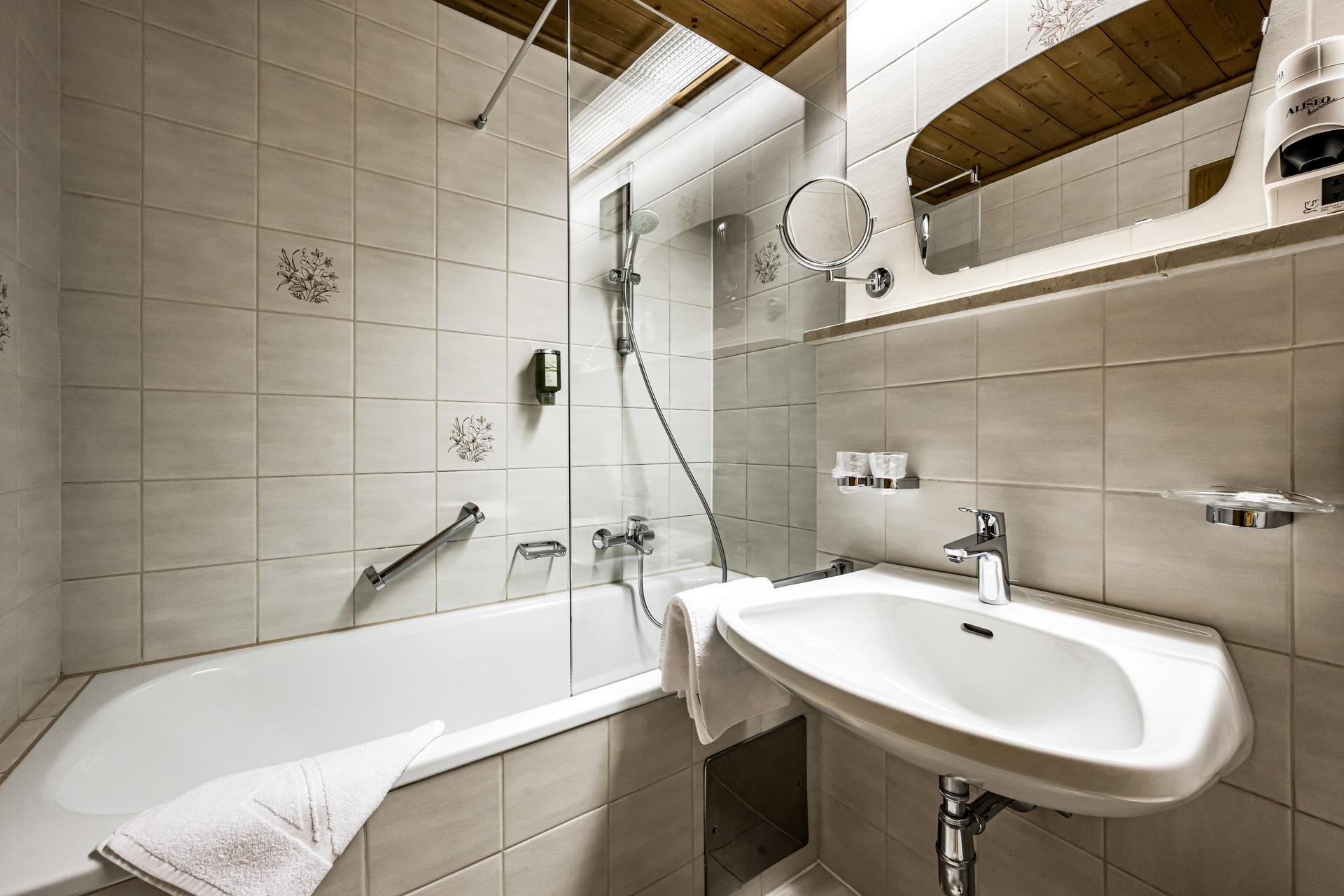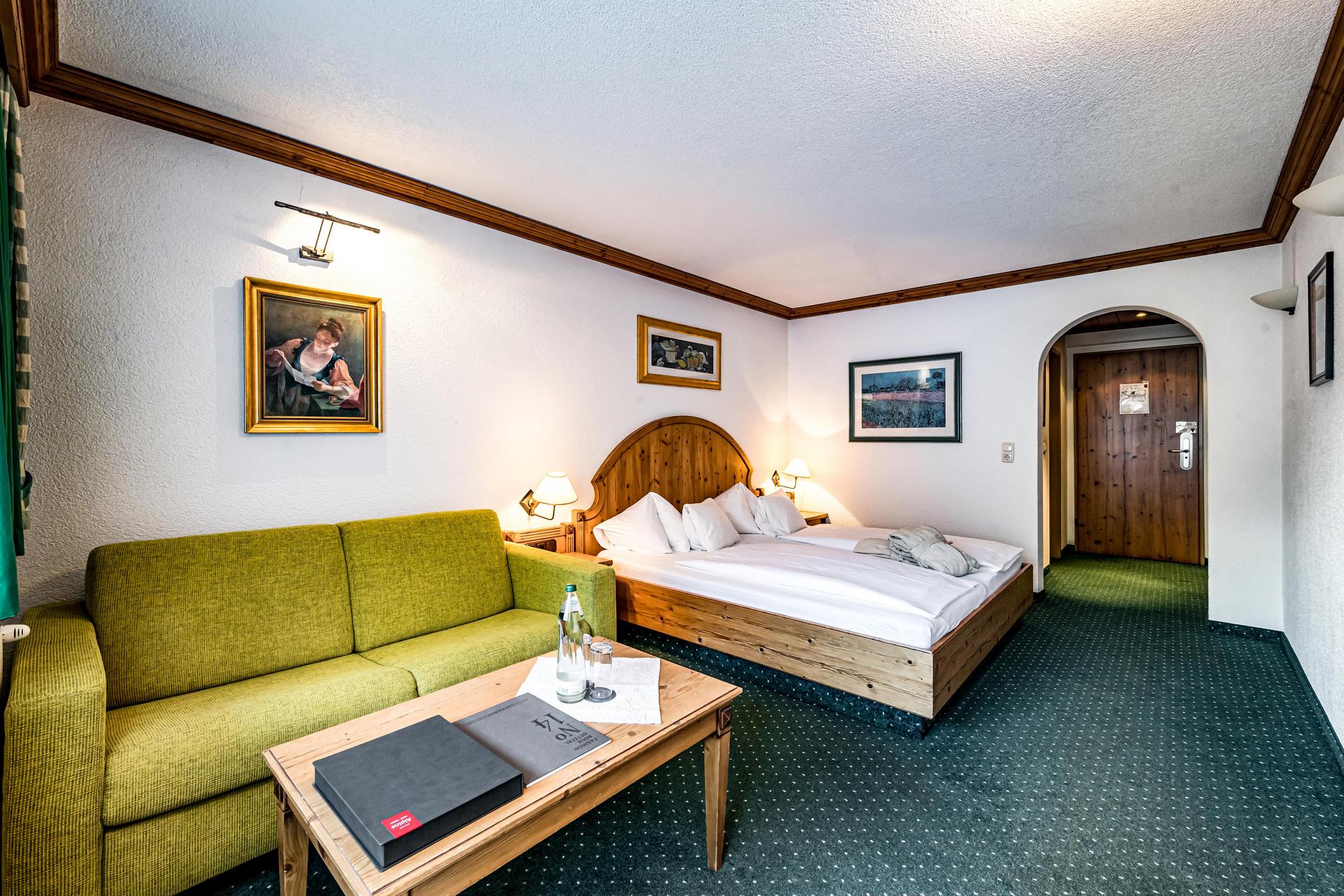 Das Doppelzimmer Budget ist nach innen ausgerichtet und bietet einen eingeschränkten Blick auf den Innenhof. Es verfügt über ein gemütliches Bett, Telefon, Radio und Kabel-TV. Zum Relaxen und Abschalten steht dir eine gemütliche Sitzecke mit Kachelofen zur Verfügung.