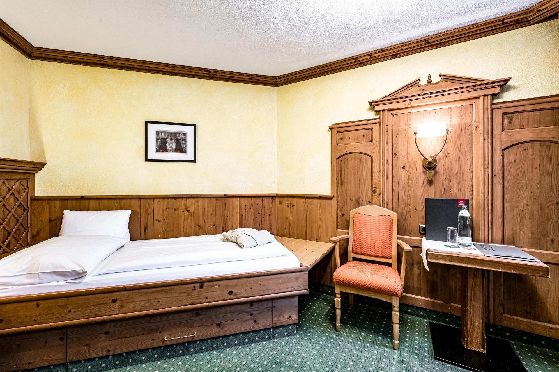 Unser Einzelzimmer Sölden, gestaltet im Tiroler Landhausstil, ist der relaxte Rückzugsort für Solo-Kletterer und alpine Individualisten. Es ist ausgestattet mit einem komfortablen Bett, Telefon, Radio, TV und Safe.